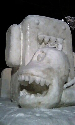 何かのモミュメントのような雪像でしたが、スゴイ芸術でした。